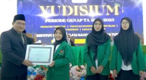 IAINUonline – Institut Agama Islam Nahdlatul Ulama (IAINU) Tuban menggelar Yudisium untuk periode genap tahun akademik 2024/2025, Sabtu (30/8/2025). Kegiatan yang digelar di aula KH. Hasyim Asy’ari kampus IAINU Tuban ini diikuti sekitar 200 mahasiswa. Yudisium kali ini dengan tema Tema Membangun Generasi Islam yang Berdaya Saing Global. Dalam acara juga diserahkan pengargaraan pada mahasiswa berprestasi dengan IPK tertinggi.